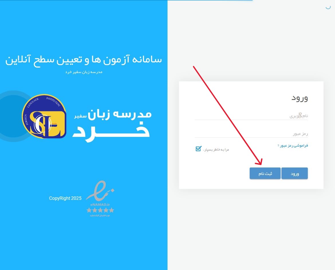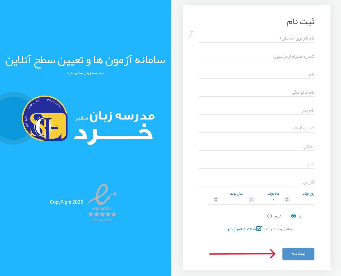 مجدد گزینه ثبت نام را انتخاب کنید تا در بتوانید در سامانه تعیین سطح، وارد شوید.