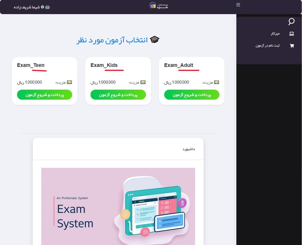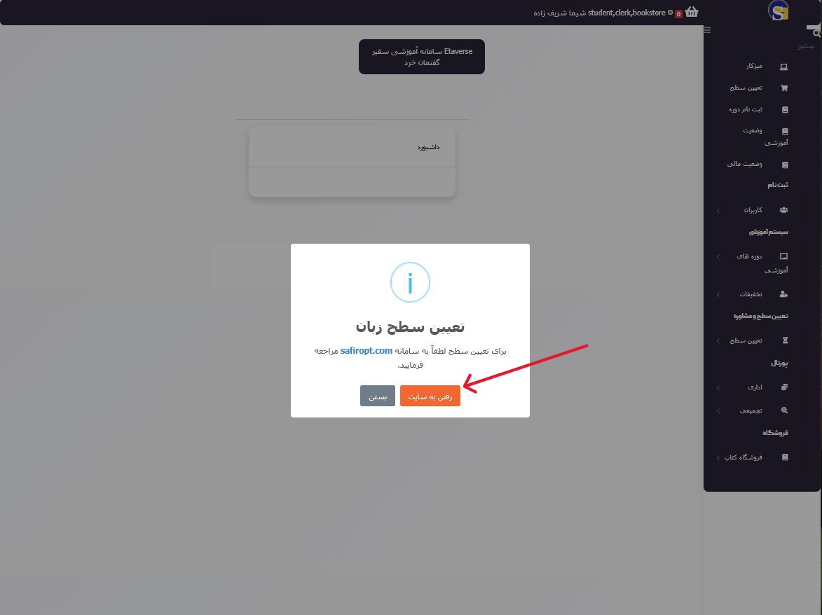 از طریق نوار کنار صفحه، گزینه تعیین سطح را انتخاب نمایید و وارد بخش تعیین سطح شوید.