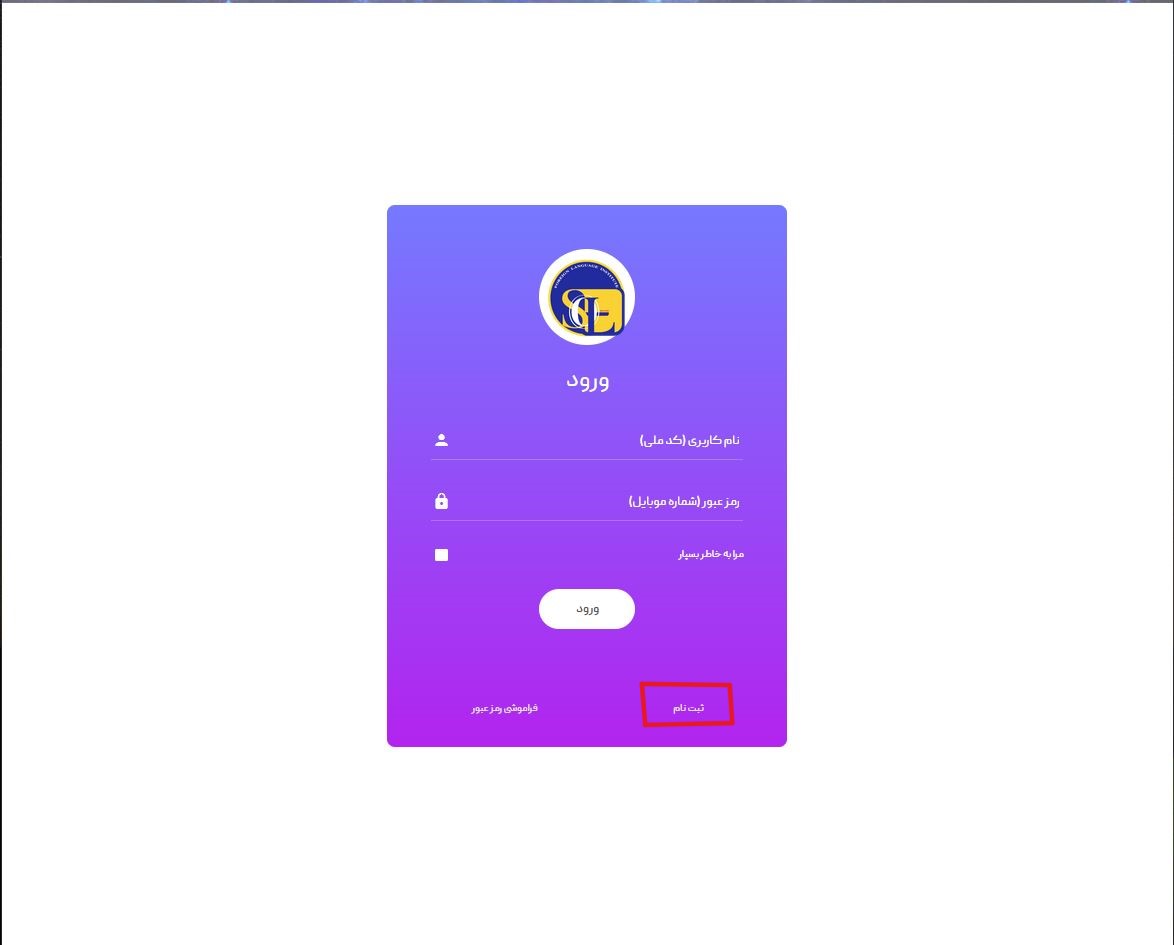 پس از ورود به سامانه، گزینه «ثبت نام» را انتخاب نمایید.
