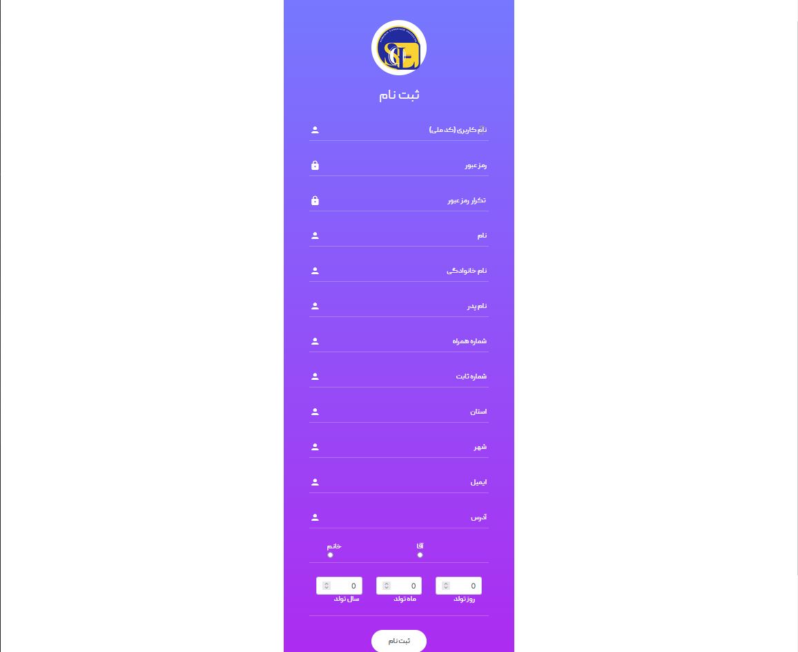 سپس تمامی اطلاعات خواسته شده را با دقت وارد نمایید. دقت کنید که کدملی شما پس از ثبت، قابل تغییر نمیباشد، بنابراین از صحت کد ملی خود اطمینان حاصل کنید. پس از ورود اطلاعات، دکمه ثبت نام را بزنید.