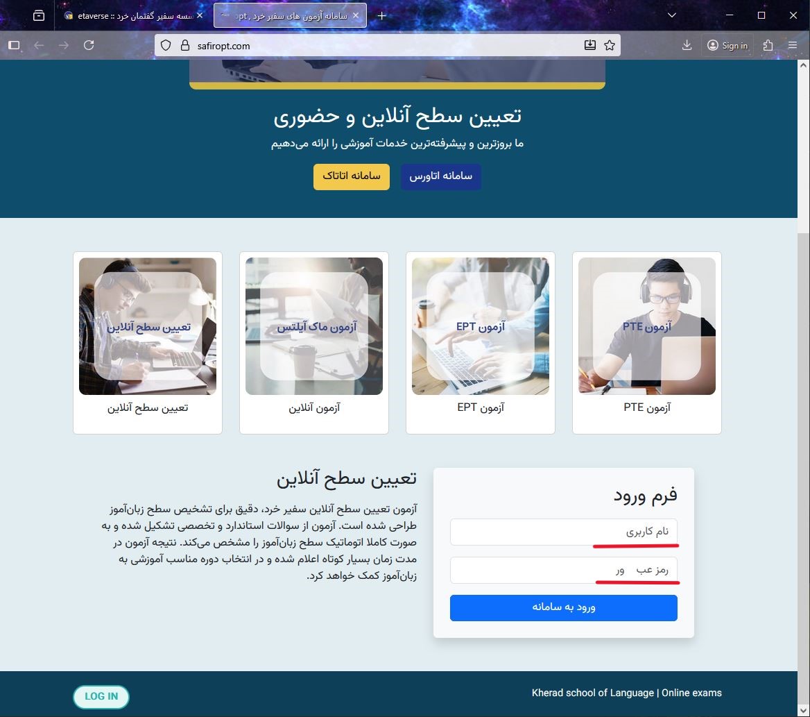بر گزینه opt کلیک کنید تا وارد سامانه تعیین سطح شوید.